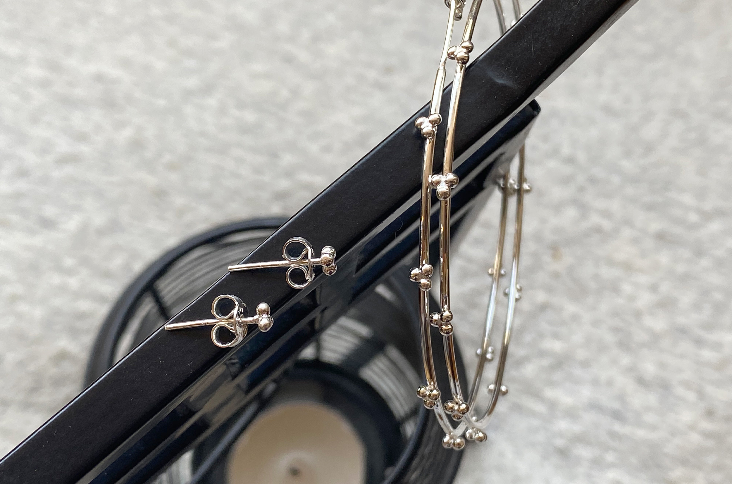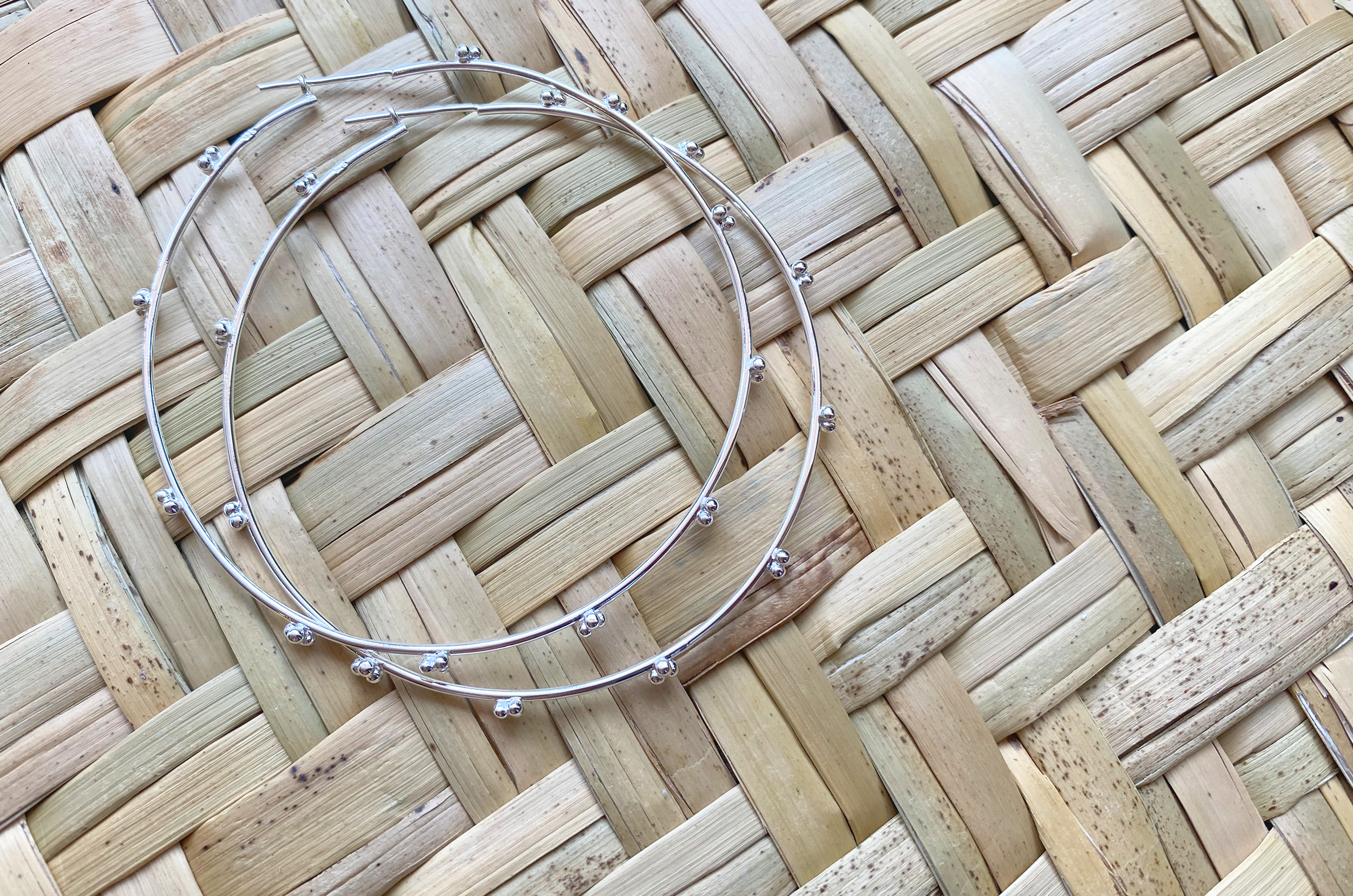 Arracadas de plata natural 925 con detalles de plata soldados a mano.